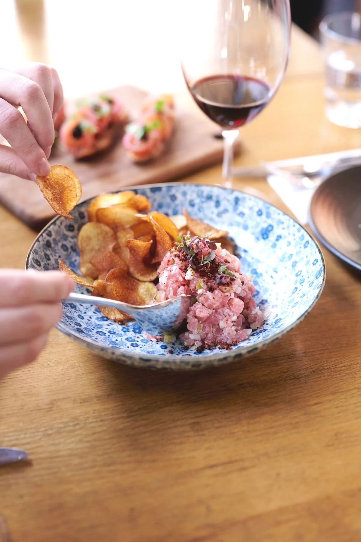 Solo diners feel comfortable at the bar with a glass and a plate. Couples settle in for relaxed lunch dates. Families gather for birthdays. Groups of friends stretch a midday booking into the afternoon.